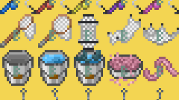 Initial release Two downloadable sprite sheets of respectively : 30 16x16 pixels fishing stuff, divided in 6 rows and 5 columns. 30 16x16 pixels fishes, divided...