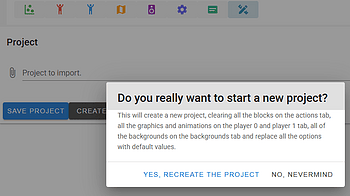 This fixes a bug where the "Create New Project" button failed to clear the actions tab...