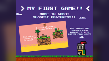 In this new version I have implemented a few improvement from the suggestion from the jam. Here's the list of them: added new jump input using "W" or "arrow up"...