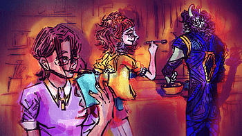 In the monochrome sky of an old Game Boy, an avatar of Phra Rahu emerges. His insatiable quest to devour the sun resumes. It doesn't matter that this sun isn't...