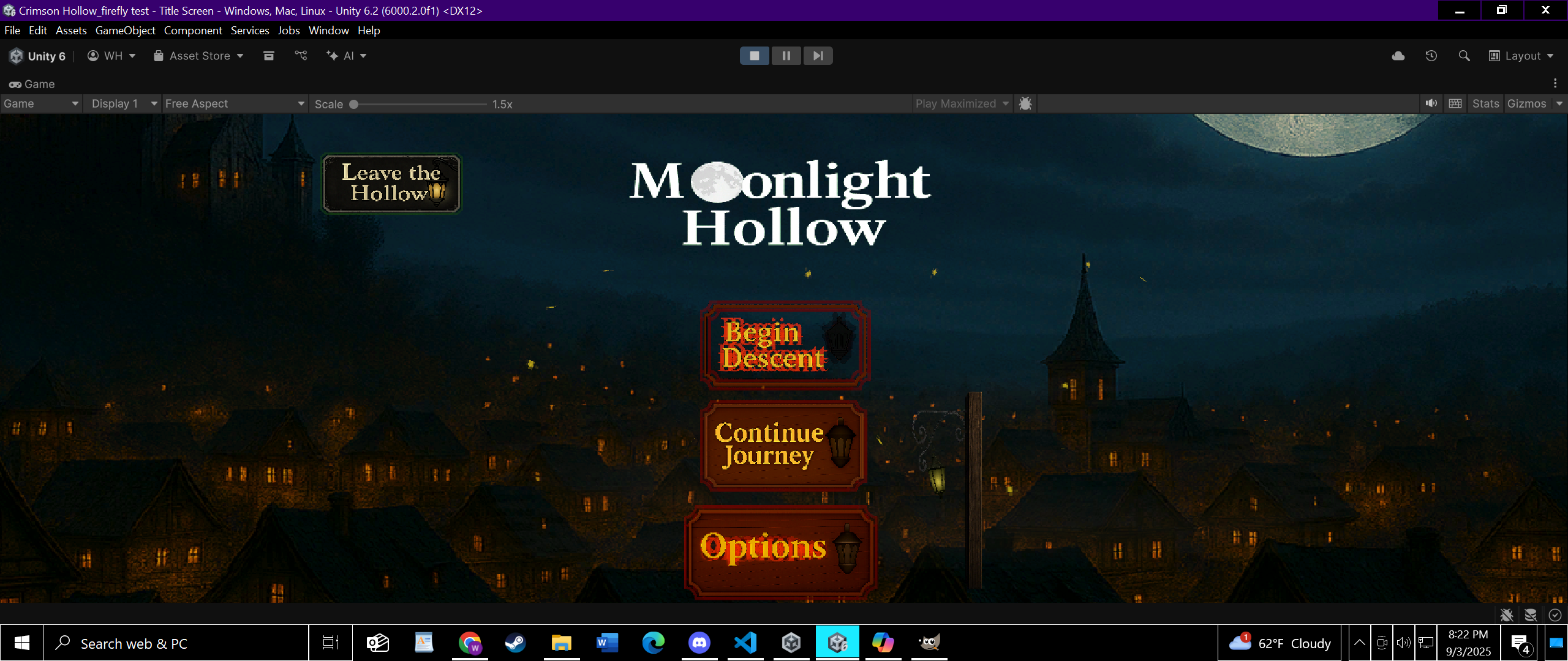 So, my process. I started working on this a couple of weeks ago. The very first thing i learned how to make was an animated firefly in Unity. I've never had any experience working in Unity, and I have little experience animating anything, though i understand the concept. This took me three days to get right. It was a lot of trial and error, but, it was a huge milestone when I did. It made me use a lot of elements in Unity, so the process taught me about the heirarchy, the inspector, the project window, asset uploading, the animator, creating scripts, and just the general flow of Unity. I have been communicating with Copilot to teach me these things. It has been really a wonderful tool. It can draw images, slice them for you, create sprite sheets, make backgrounds transparent for uploads. Some may have a disdain for AI generated things, I get it. I used to as well, but, to me its just a tool. It saves me a bunch of time and it is a skill to communicate properly with AI interfaces to get exactly what you are looking for. I'm much more computer savy than I am artistically gited, especially since i've lost a portion of my functional vision. In any case, this is my first post, I just wanted to put some basic info on my current process so far.