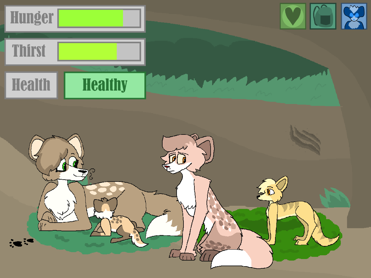 Your hunger and thirst systems keep track of how hungry or thirsty the player is. For thirst, the player can drink out of the stream that leads from River Falls, or they can drink out of puddles during rainy days. For hunger, the player can grab food from the prey pile. After adding a piece of prey to their inventory, the player can click on that slot in their inventory and chose the "eat" option. It is planned to add insects and worms that the player can snack on as well for minimal hunger points.