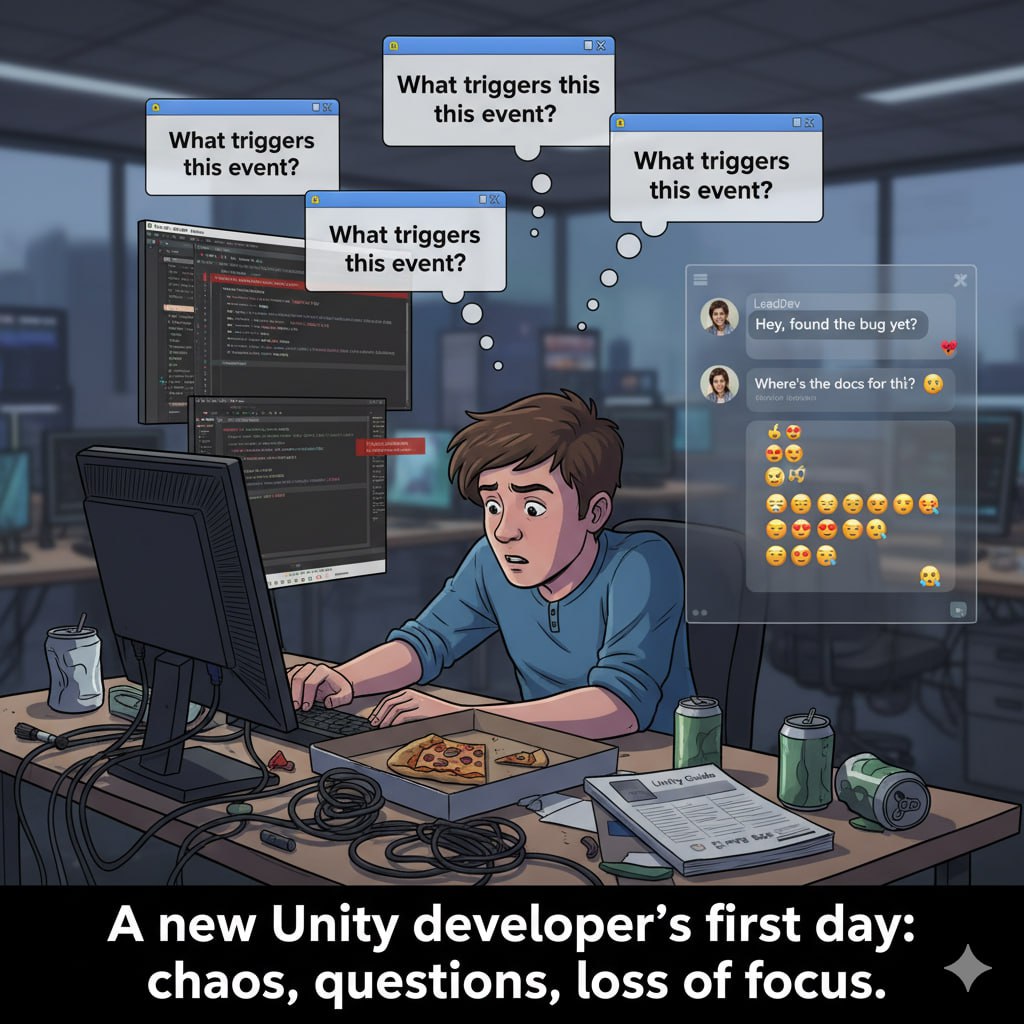 The real cost of onboarding a new Unity dev isn’t their salary. It’s the 50+ interruptions they trigger in the first week — every “where’s this class?” or “which scene is it in?” pulling seniors out of focus and slowing the sprint.
