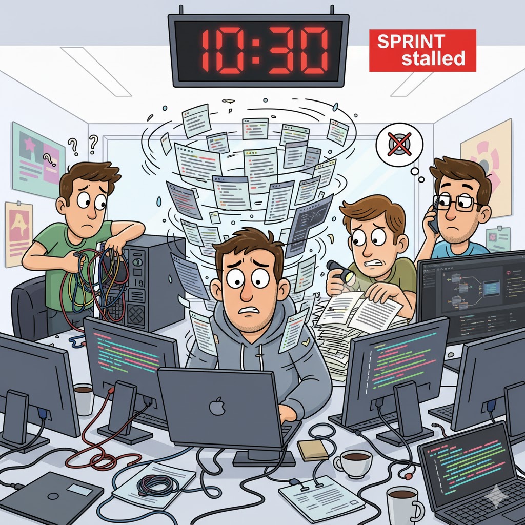 But in reality? Two weeks disappear into wandering through scripts, asking for explanations, context-switching, and broken momentum. The whole team feels it.