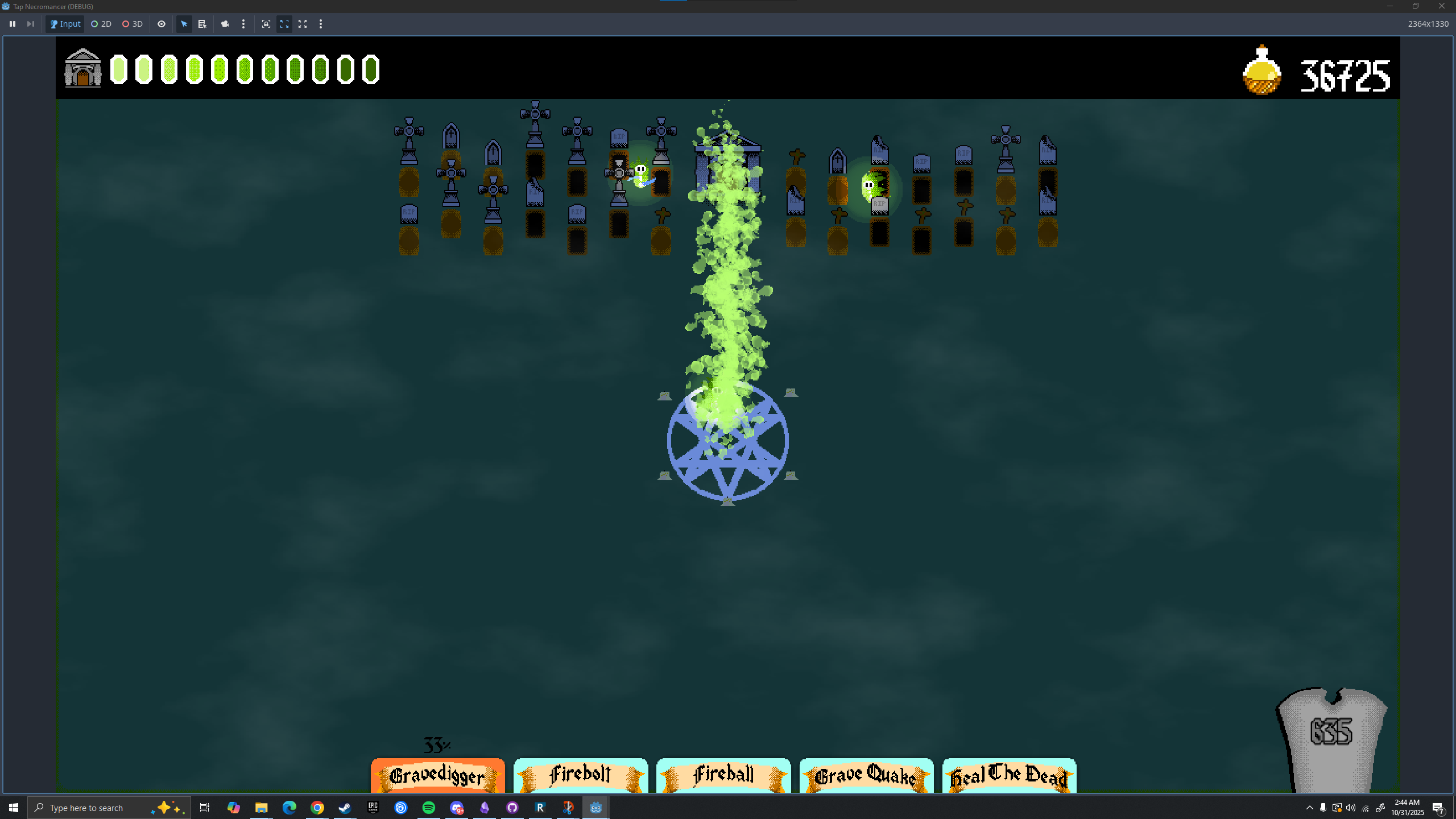 On a much more minor note I got the grave quake spell, and camera shake in the game to let me do a run without any summons if I wanted. The whole gameplay hook is to beat waves with a variety of unique card combinations. I still don't have a great name I'm using Tapnecromancer on stream, but I'm open to any and all suggestions! If you enjoyed this I give regular and consistent updates on Instagramthroughout the week, and I stream via Twitch, YouTube, and Kick Monday - Friday (generally). Anyways if you made it this far thanks! I'll try and post another one of these next week.
