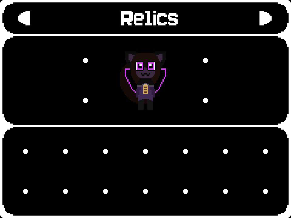 Now last time I showed the 6 sup buttons I have to make. So I thought why not start with one thats not to easy nor to hard to start. So I went to the Relic button. Relics are the equipable things you can use to get the upperhand in a battle (Man I sound like a tv add now hehe) Anywho the way I want to menu work is that you got 4 slots to equip whatever Relic you might find in the game. I wanted this menu to look as the 4 slots besides a picture of Stray. With at the bottem 14 other Relics you can equip. You can go to more pages for more Relics if you are having more then 14. So I did some drawing and the menu came together faster then I would have thought cause Its done. Okay well the drawing is done. Here it is in his rawest form
