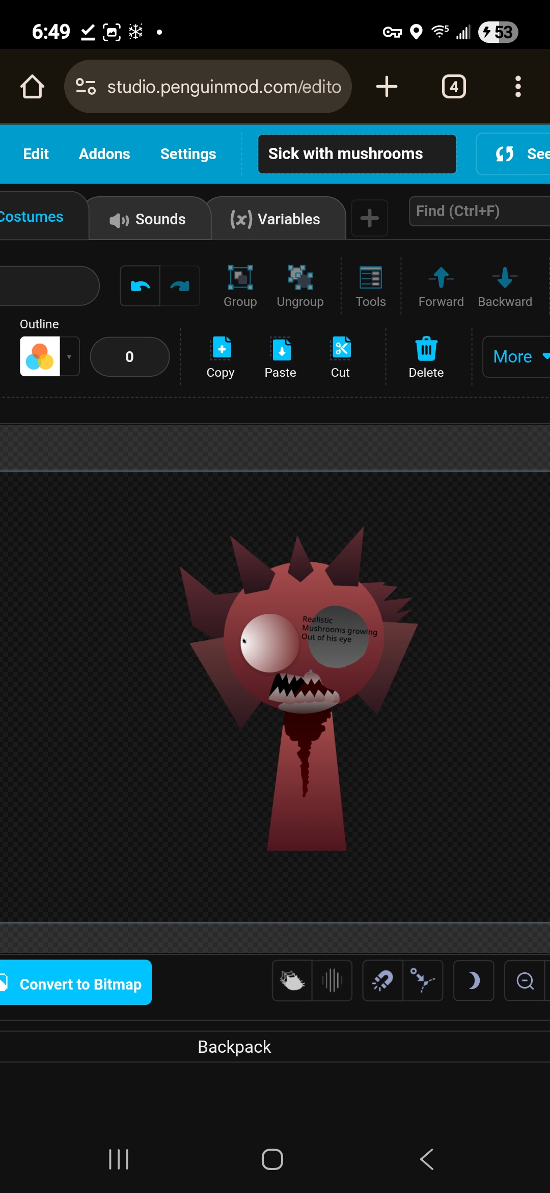 About: a game about the normal sprunki cast getting infected with shrooms, not by mr. Black though... yes this is going to be a para-sprunki take 2, because i felt the game was too funny and needed to be a bit more serious then what it is.