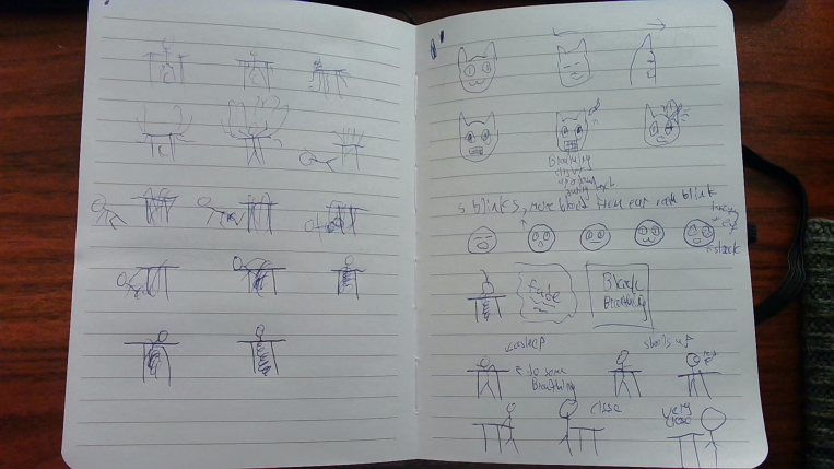 The principal writing is complete. The focus is now on programming, creating art assets*, and playing around with Ren’Py features. Sure, there is the 90% of the game that uses this minimal visual perspective/art style noted above, but the end sequence is shaping up to be expectation bending and, hopefully, UI breaking. Here are the storyboards for the last sequence, in case you cannot wait.