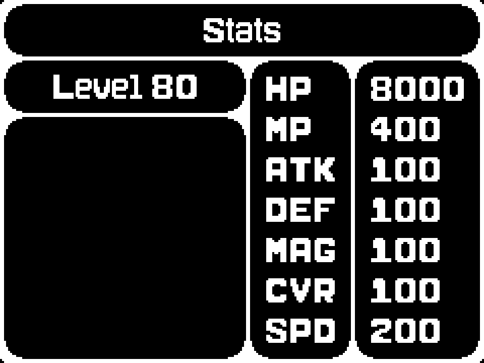 SO I got that yea cool but what next? The screen was not at all full. Sure I forgot to add the level counter which……. fair but because of that Im not to sure what I was missing. Now I was thinking of letting you choose where you begin the battle. Now I didnt really look the most to how many tiles the battle system would get. Now I know that its gonna be a 5 by 5 for you and your enemie. But with that I drew it in the lil space I had left but that space was a lil to small and it made it look a but full. But because I now kinda want that to be a thing you can customize I want that to be a thing. BUT I dont know where to place it. So I need to make a new button in the Core Button of the Main menu (Yay more work). Ill get there but here is what the Stats menu looks at the moment