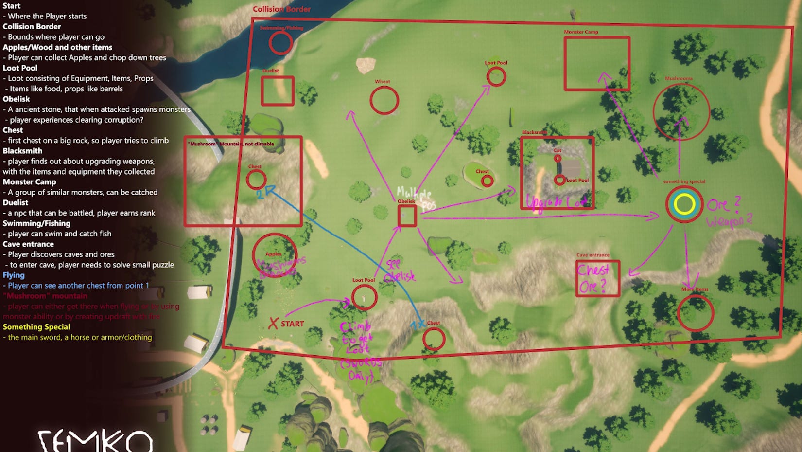 Form here the player would probably go further down towards the enemies or to the house they see in the far, which is the blacksmith.