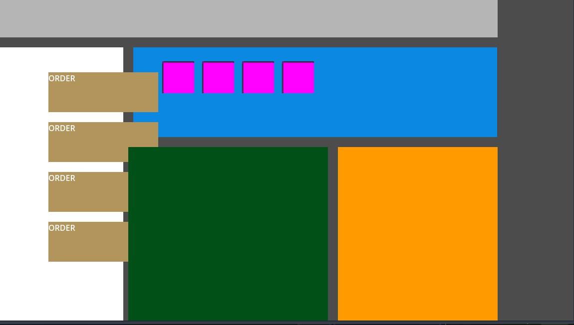 Today’s progress was all about getting the stand layout functional and making the different zones actually behave the way they’re supposed to. Everything you see is pure placeholder (squares, rectangles, and programmer art), but the core logic underneath is starting to look like a real loop.