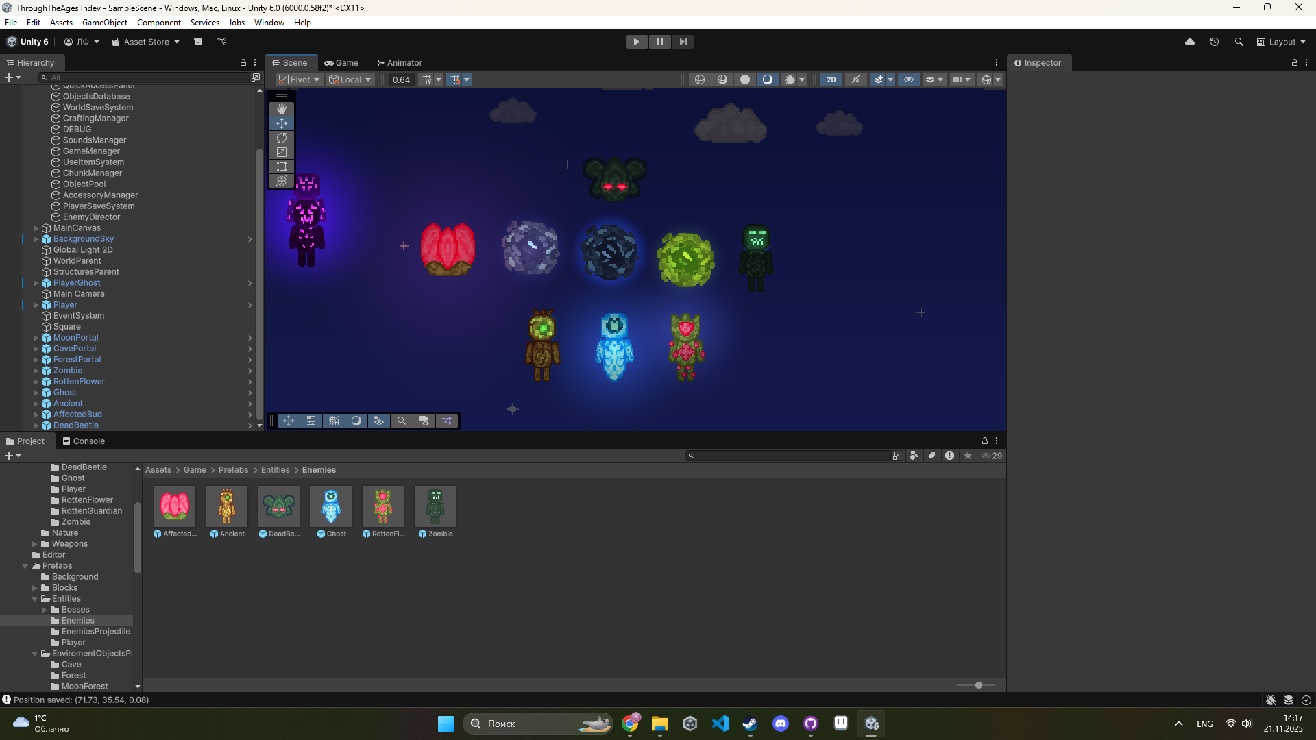 November turned out to be a very productive month in the development of Through The Ages. A new biome was added, along with many new items, structures, enemies, the first boss, and a huge number of bug fixes, QOL improvements, and new mechanics. An Enemy Manager was added, making the game world feel more alive. Real, winding cave passages were also introduced. The item usage system was completely reworked, and the list of new features and changes could go on forever.