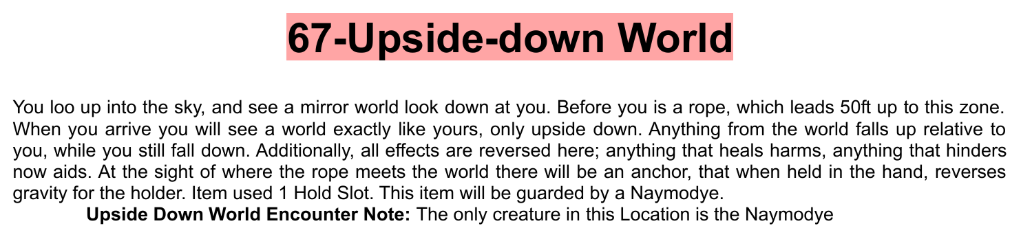 And the general idea of a "bizzaro" location. Nilbogs would be from here.