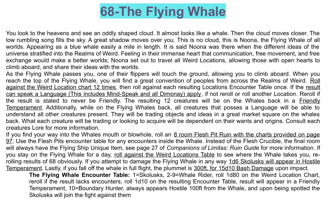 I once considered condensing this book to be d60, with this as one of the Just a Little Weird.
