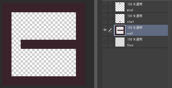 塗り終わったらwall以外のレイヤーを非表示にしてください。