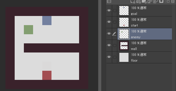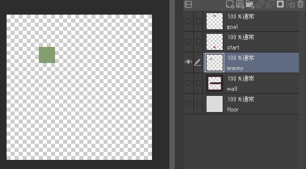 レイヤー名をenemyに変更し、好きな色で敵を配置したい場所に色を置いてください。