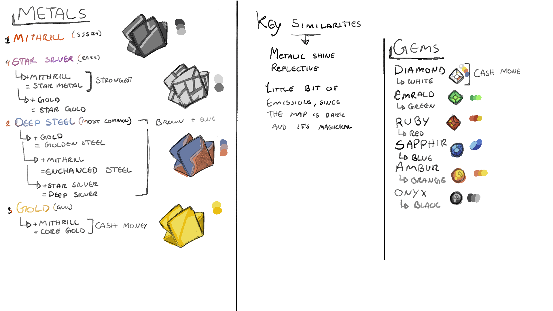 Sounds awesome right? There were a lot of name suggestions and plenty of going back and forth, but after a few rounds of voting and brainstomring, we finally settled on a name. But a new name and setting for the game is not the only things we have been up to. We have been hard at work creating more design documments to allow our team to work harmoniously when making things such as assets, textures, etc. Here are some of the images from our artbible.