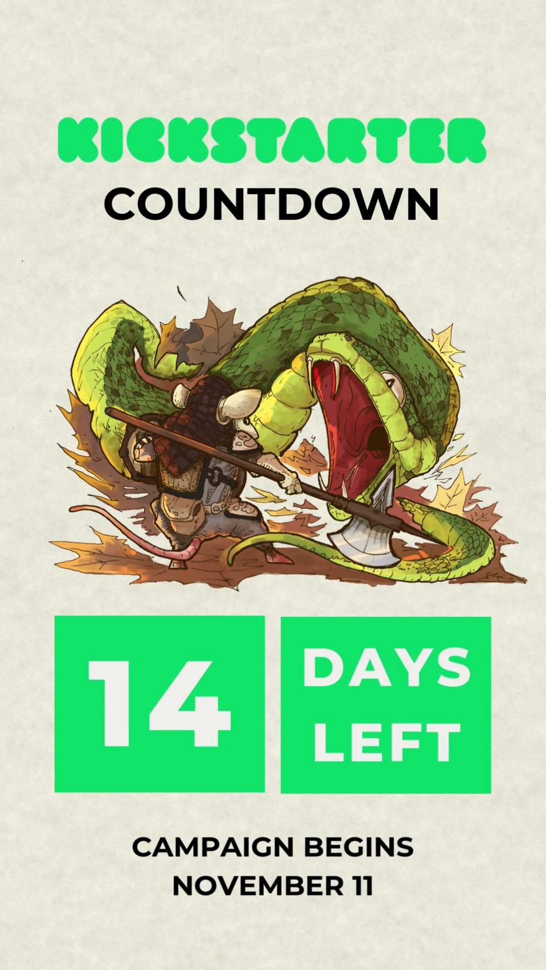 TWO MORE WEEKS! We're getting close to launch day for our #Kickstarter campaign! If you haven't already, start following Mice of Legend on KS so you can get notified when pledges open. Check it out at https://bit.ly/3NJz8mh