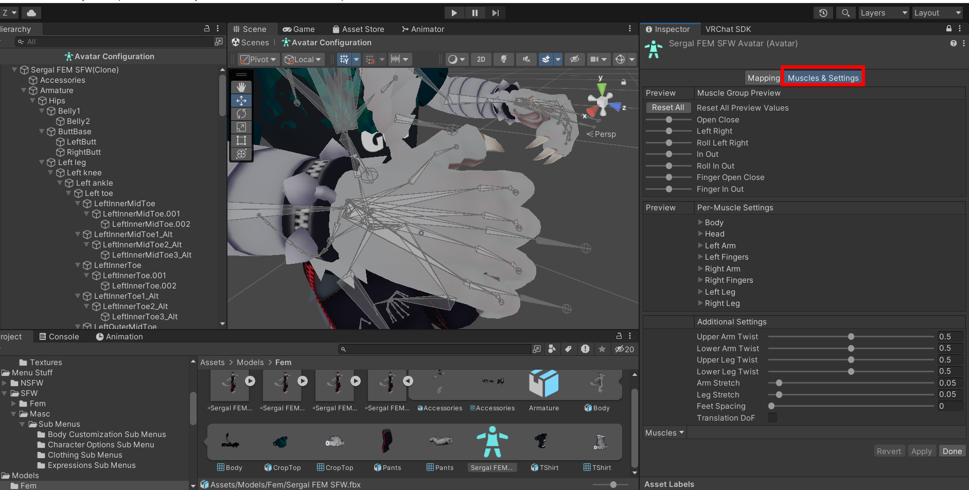 Go to Muscles and Settings