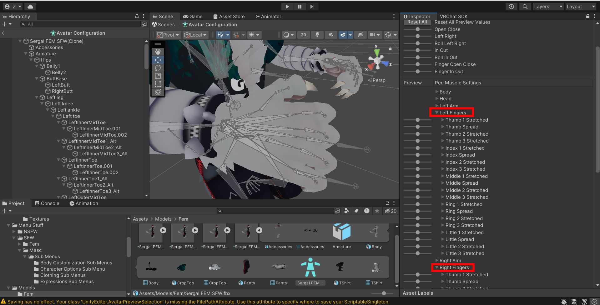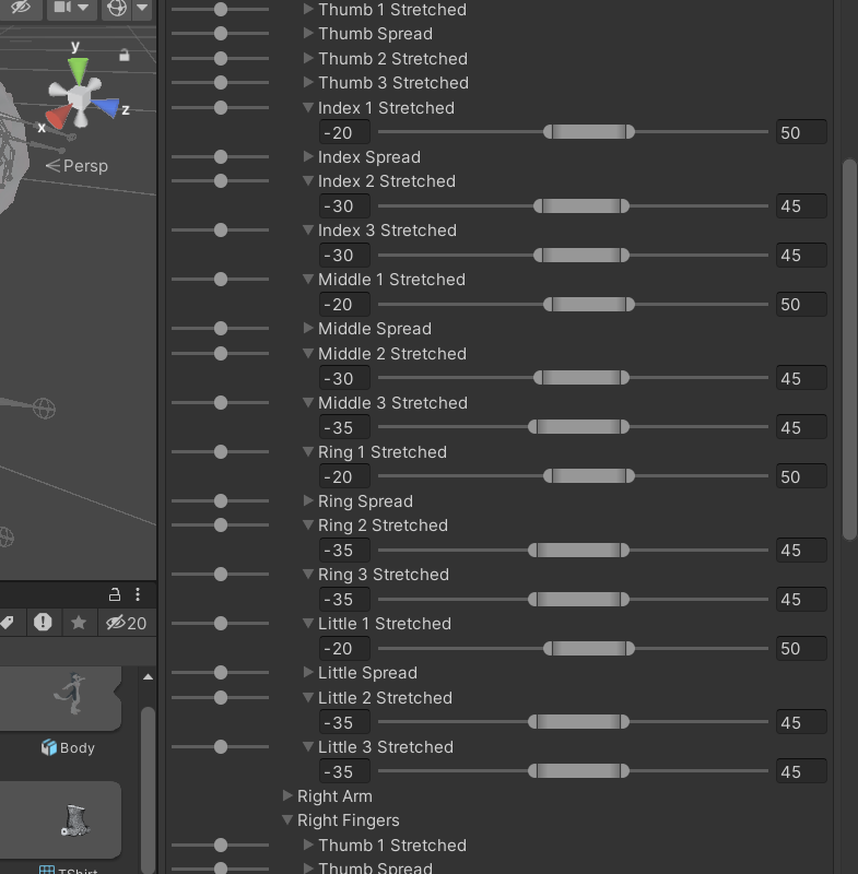 Change each each fingers stretched values to the following
