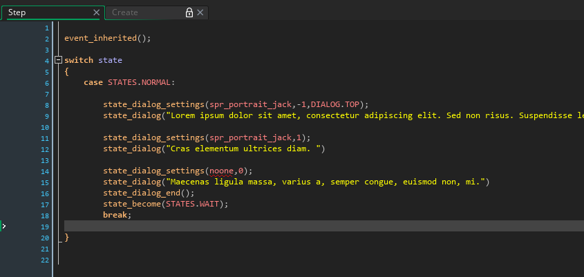 The state machine is also robust and allow for easily writing actions in a sequence so it makes writing complex cutscenes very manageable. Speaking of cutscenes, the engine also features a simple dialog system so not only can you manage sequence of actions and animations but you can also insert dialogs.