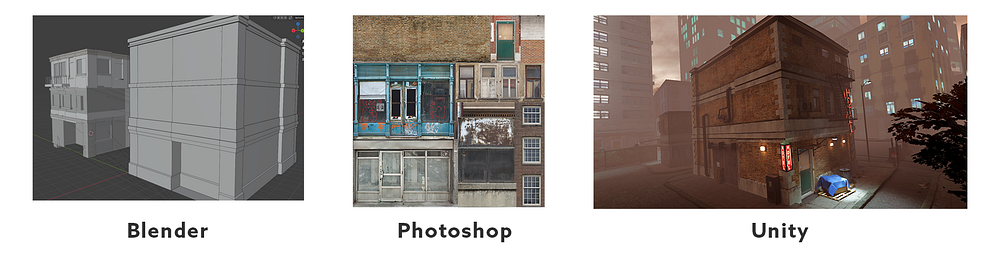 Learning what turned out to be necessary was not obvious. It’s not always clear what you need to learn. Tools: Inkscape, Photoshop, Blender, Unity, programming basics. But the key is to combine them consciously. You want a house in the game? You build a model in Blender, texture it in Photoshop, set up the materials in Unity, and look at it on the headset. That’s how I built my workflow.