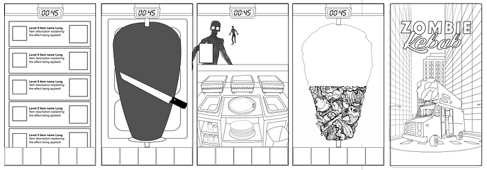 I thought: cool, but what’s cooler than fruit? Kebab! And what instead of ninjas? ZOMBIE! Shivers went through me, and I haven’t been able to free myself from that thought since.