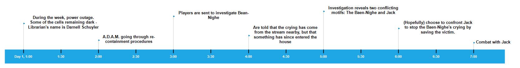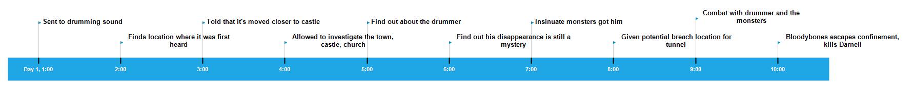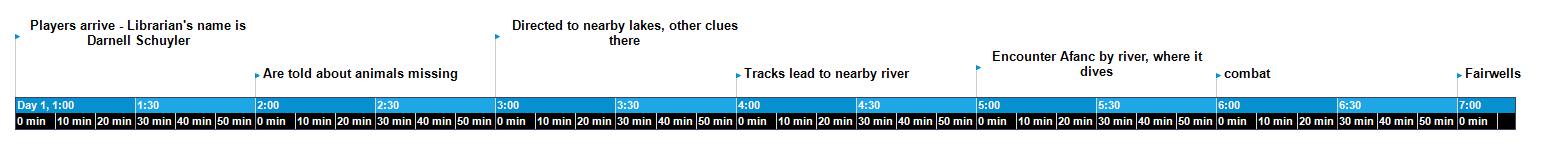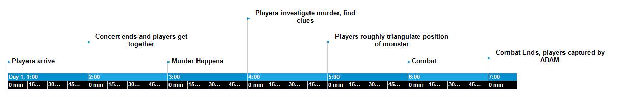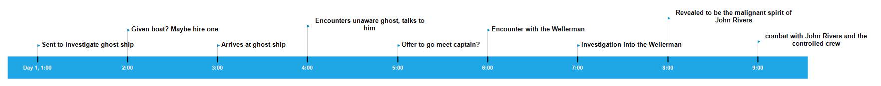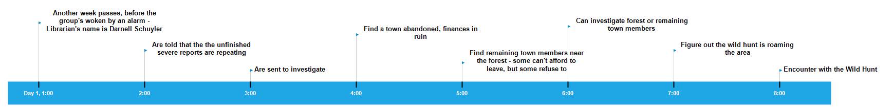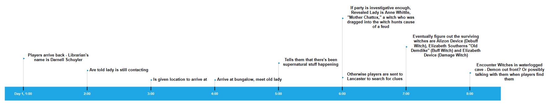 Since this was also a mystery game, with player-lead investigation, I also had to give the players clues as to what they were going to be encountering during the session. Below are my notes as to what hints I should give: