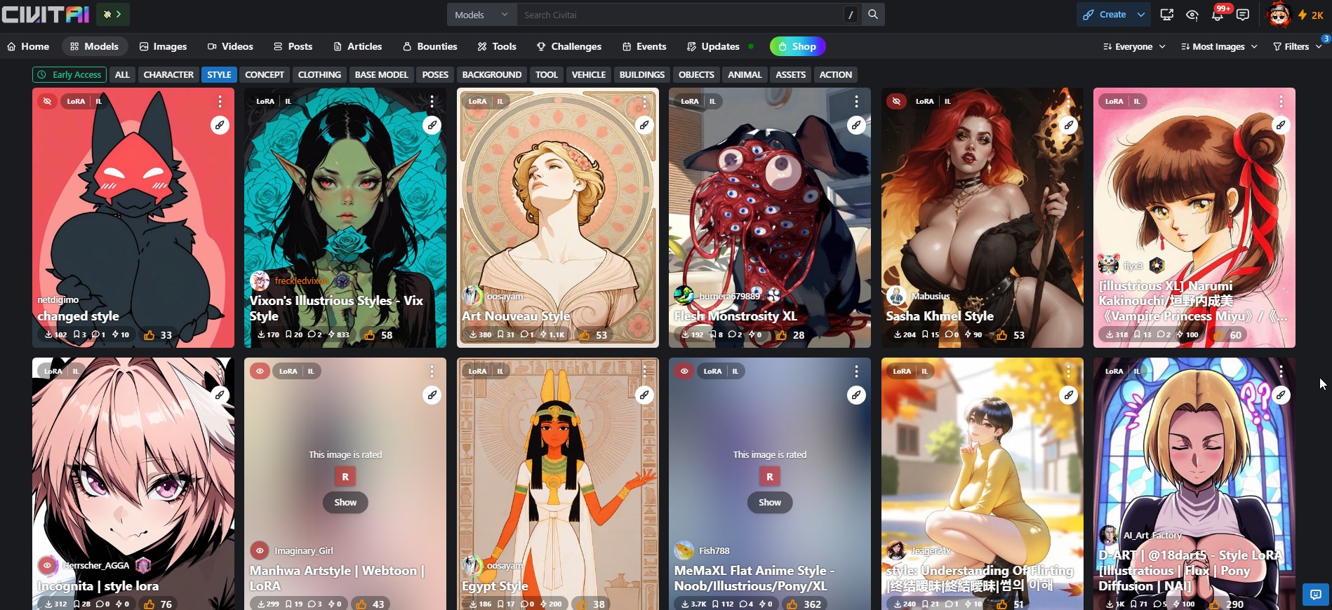 1) Go to https://civitai.com/models?tag=style