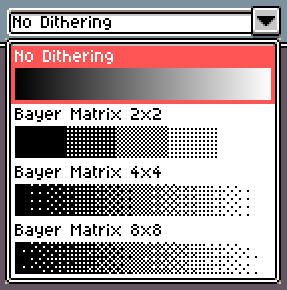 Next is the Bayer Matrix 2x2, and this is already a huge improvement. The intermediate sections look vibrant like the colors of a real sunset. The heavy stripes aren't what I want for this background, but could look great for the sky of a planet with rings.