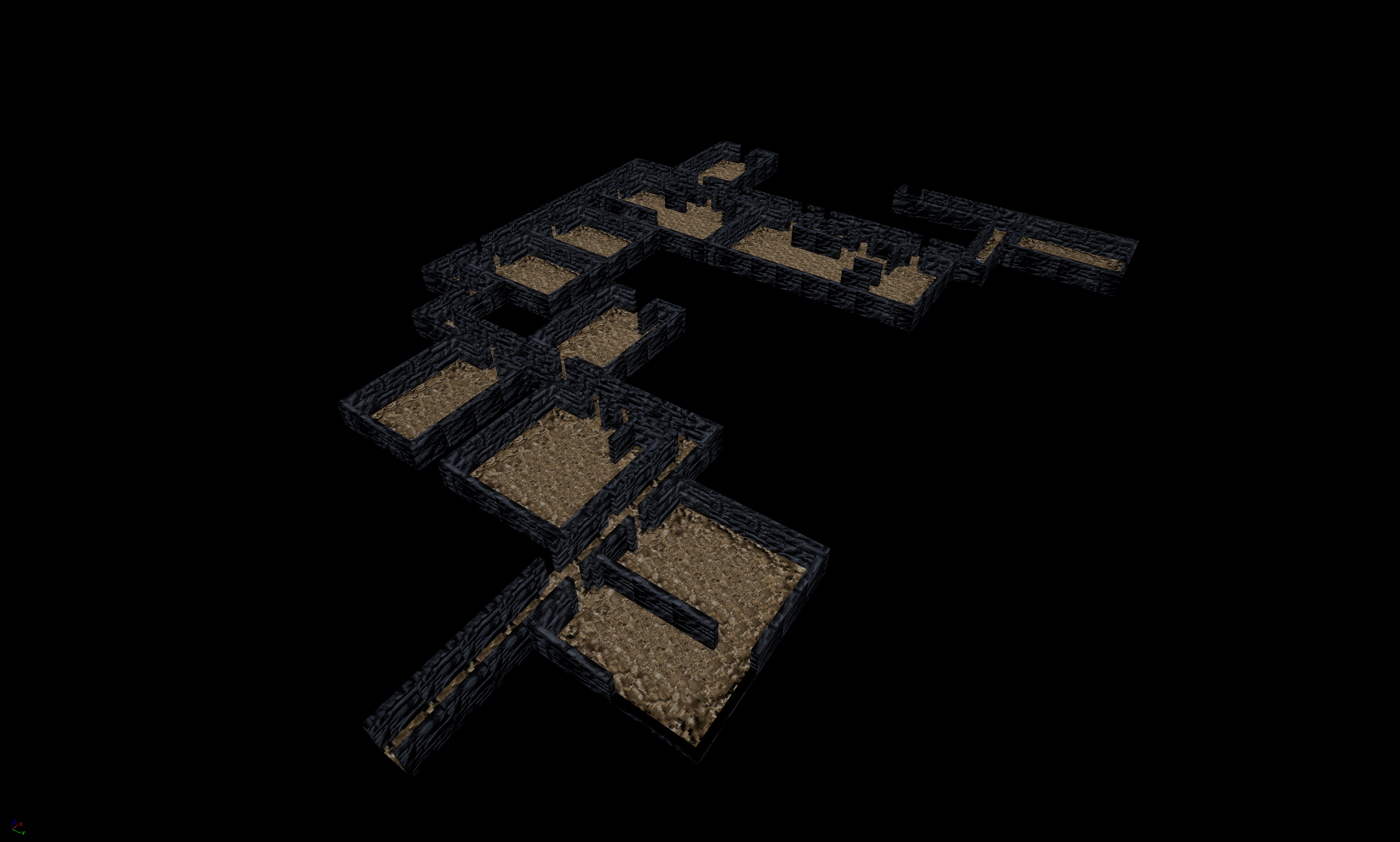 While it's far from complete, as this was just a mere test (as it has a lot of kinks that need to be fixed), it has proven to be quite beneficial for future en-devours, to work out a different method of generating dungeons (as seen in the image). Overall more efficient and faster, which would result in less loading screens.
