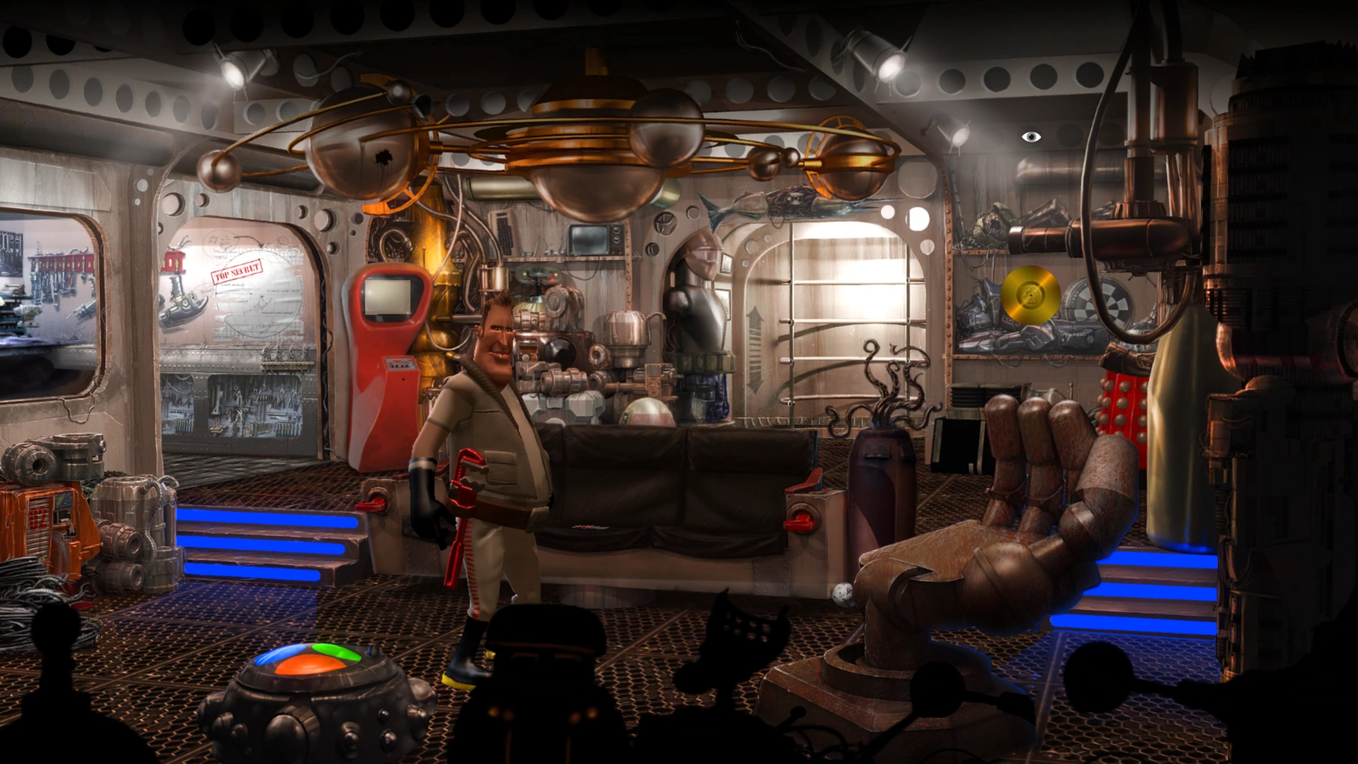 However, the first puzzle in the game is wrong, handle 2 rotates the wrong way according to the diagram, and there are a dozen missing or place holder action cues in the first three screens. I started documenting this, but this is alpha and pre-alpha stuff. The lack of feedback when an action I'm attempting isn't possible versus I failed to click in the right spot versus I failed to intuit what the UI thought I wanted to do renders the game quite frustrating to play. I feel that any feedback I could give on the puzzles would be meaningless as so far many feel unfinished and if I comment that putting the hint that you need to use Rooter's head for the bit as the second look action on the Zapon drill seems obtuse, given that most objects don't have additional descriptions, that's pointless if the game is just missing a line for when you try to put a bit in the pipe wrench (my initial thought) that points to Rooter.