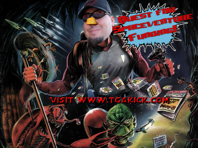 But I LOVE, love the art in Scraps' garage and the density of details and sci-fi references.  With of course, the best being the "Home" scene, the junk/TV room upstairs from the garage.  And I thought it'd be fun to see how many references we can identify.