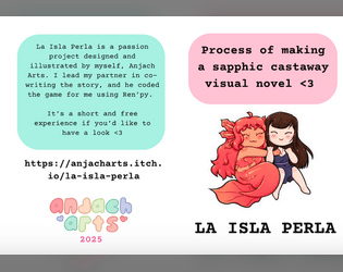 Concept art minizines for my sapphic castaway visual novel!