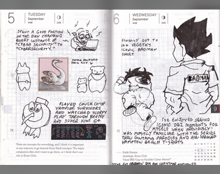 Collection of hobonichi entries from end of June to start of August 2023 + some assorted sketch pages
