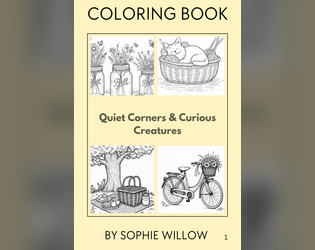 Printable PDF coloring pages featuring animals, gardens, and warm cozy scenes.