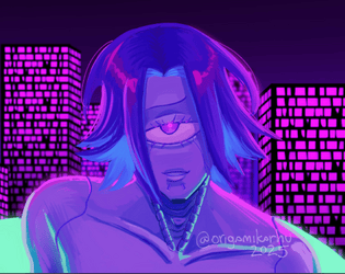 A short comic collection featuring Cyberpunk-inspired OCs from myself (@origamikarhu) and @wissnt on Toyhouse!