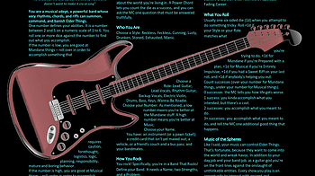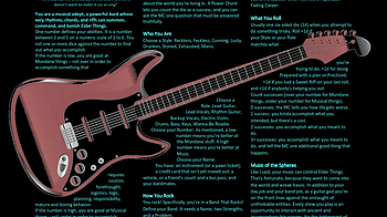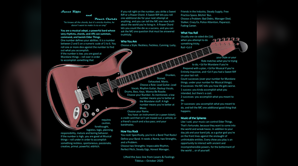 I think the title of this post explains what's going on. I got a lot of feedback about how hard it was to read the text imposed over the guitar. Someone kindly suggested I try wrapping the text around the guitar, instead. I made the font 10 points, which may be a challenge to read. Another option is to go to two pages with additional content. Let me know if you'd be interested in seeing that; I'm not totally bound to the one page aesthetic though I do like that I'm following so closely to my inspiration.