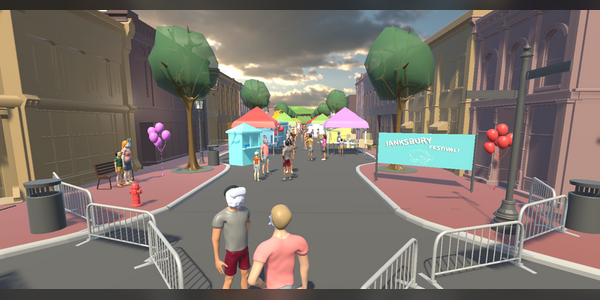 Hello, here’s another update on the state of Curse of Janksbury! I’m Mary Benetti, the lead artist for the game with a focus on level design and animation. Lately, the team has been tweaking gameplay and level design to make the player experience shine. We’ve reconsidered scope and priorities of gameplay, and have distilled the game into two main, unique levels. The first level of the game is about introducing the player to the town and overall lore. Before the “jankness” reigns terror over the town, the player gets to leisurely walk down a street designated for the Jankbury Festival. Within this festival there are an abundance of vendors, games, and music for the player (and townspeople) to enjoy. It’s lighthearted, it’s fun, and maybe a bit unsettling.