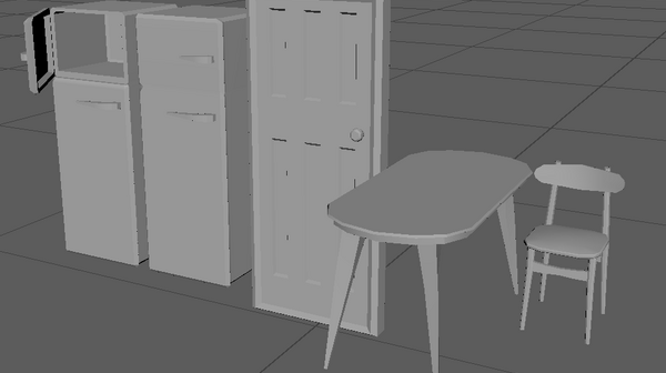 After more research on 60s kitchens I began modeling the furniture for the it, I tried to give it that retro feel and I feel like I captured that with the models I've made, We had discussed previously that we wanted the game quite low poly with hard edges here and there and I completed that to the best of my abilities.