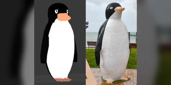 Following this tutorial, I began work on my own idea for a 3D model, which was based on the tourist attraction in Penguin, Tasmania - "The Big Penguin". This process went a lot more smoothly than the barrel, probably because I had warmed up to 3D modelling once again. As for the model itself, while I did try to get it as close as possible to the real thing, it does look slightly off. Here's a side-by-side comparison showing my model and its real life counterpart.