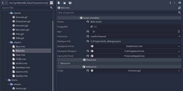 You can now export all your data to Godot Engine's Resource files (.tres), which can be easily edited and used directly in the engine's inspector. The files are categorized in folders which helps with organizing your project. The feature supports all major property types including references to other resources.