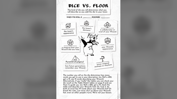 The release version of Wizard Tower Rumble is out now! Available in zine and HTML formats, this is a great game any time you have a bunch of dice and ten or more minutes to kill. Now featuring full layout by Aven McConnaughey and sick custom cover art from Thomas Novosel.