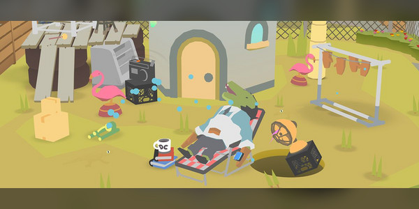 “Donut County” lacks a clear light direction (or light in general) and shading. The only shading we see is a bit of contact shadow when a character/object touches the ground. The contact shadow is indicated by a faint shift in brightness to a darker value.