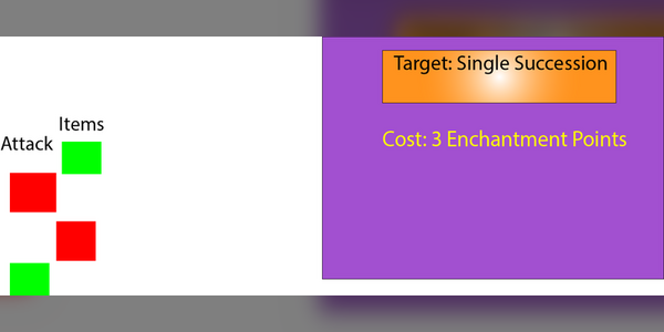 After battles, the Ui would have the players health bar and shield if any at the top of the screen. A compass will give a sense of which direction the player is going in. When engaging in a boss fight, a health bar of the boss will be displayed at the bottom middle of the screen, and is broken into segments. Battles are turn based. The Ui for battles is like a scroll wheel. Players can scroll between attacking and using items on their turn. Picking an attack gives a hud that shows what the attack does and how much enchantment points it takes to carry out the move.