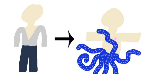 Finally I drew a character, this is Frelsi. He spends most of his time parading as a normal human tourist, but in reality, he's the king of the underwater world he's on vacation from. He has a ring that lets him appear human and breath air, so I imagine a form changing fighter, perhaps building from some sort of meter instead of freely switching.