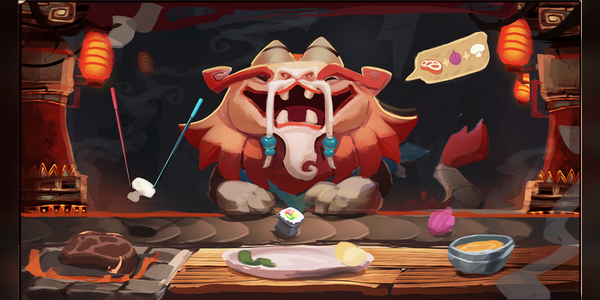 First, our character now shines in bright colors and is more expressive than before. During the game you will see him react to the different dishes you prepare with your partner, don’t let him wait to long. If he gets angry, he will slam on the table so that all the foods gets launched into the air.