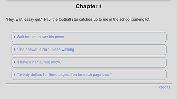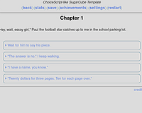 This means the engine will try to keep at most 2 copies of $ type variables (not temporary variables that starts with underscore, or setup variables, settings variables, etc.), one for current passage, one for the previous passage. Never set this to 0 or the engine won’t save any variables between passages. ChoiceScript does not allow any undo, but I like to have one undo in case of mis-click of a choice. During testing stage, however, you might want to increase this value to something like 10 or 20. Just be aware that the more states the engine has to keep track of, the more storage space it is using.