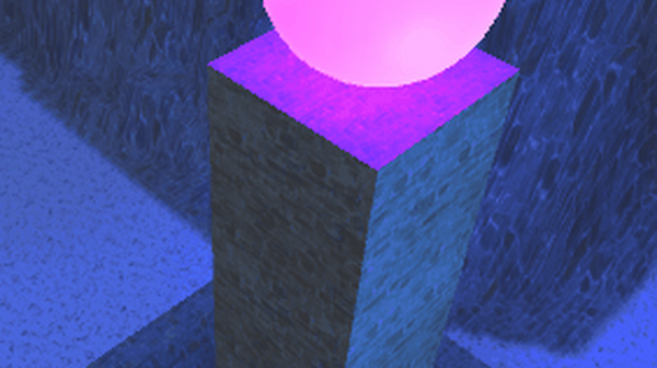 This was then applied to some other objects in a scene. The top orb is using static lighting, and the bottom has a point light attached as a child object to cast its light.