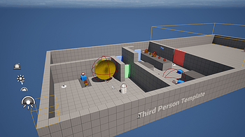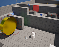 This Update includes a main menu with a play and quit button. A pause menu with a resume game, main menu, and restart level button, with enemy AI's. The first AI is static with a health bar widget above its head. The second AI is in the other room with a door that has to be triggered by a switch on the platform nearby.